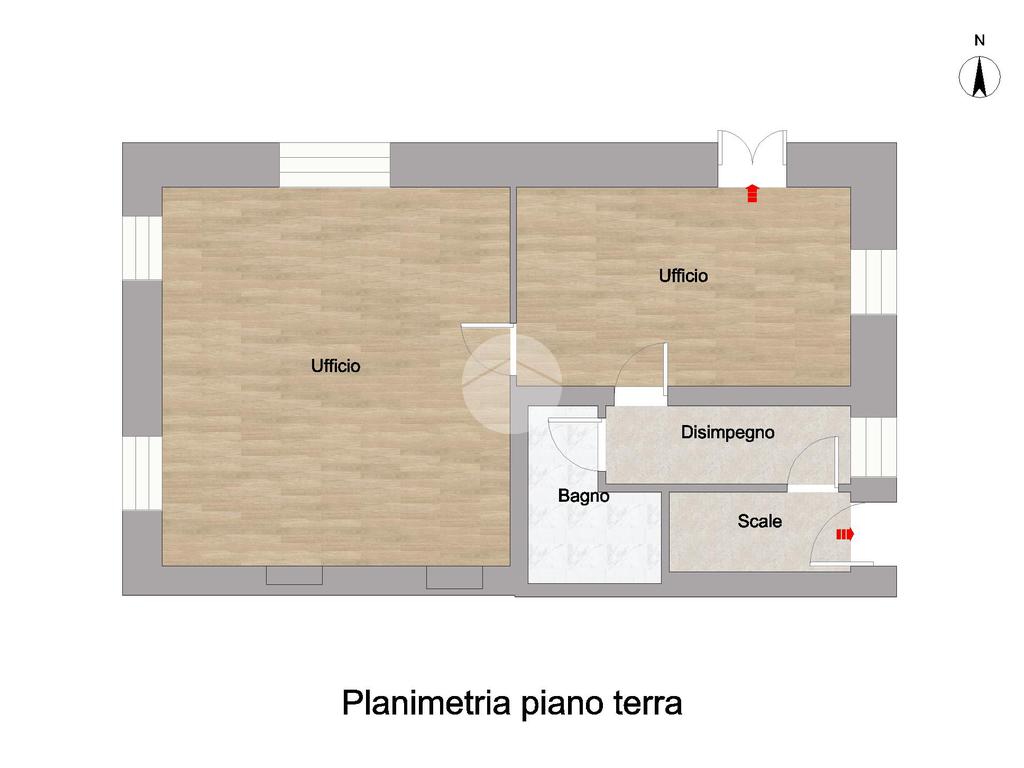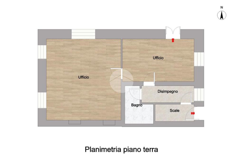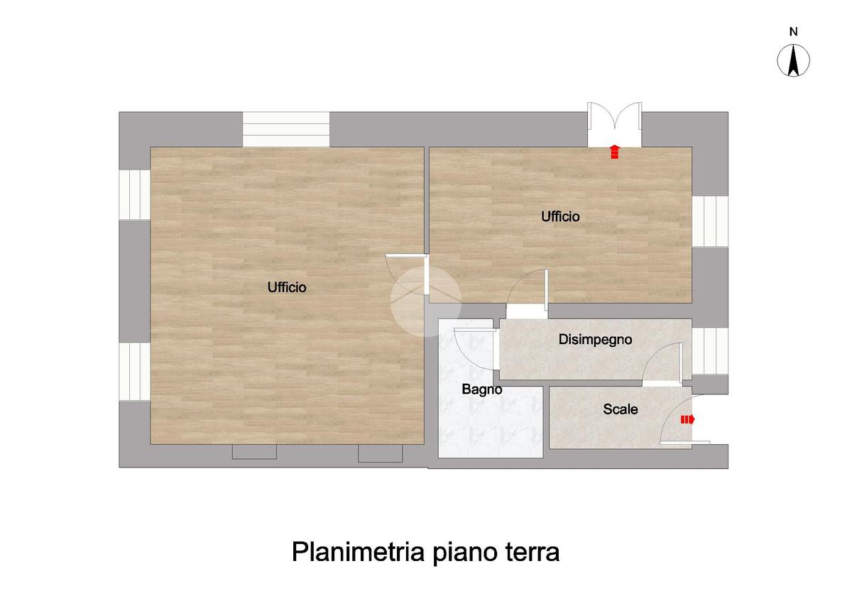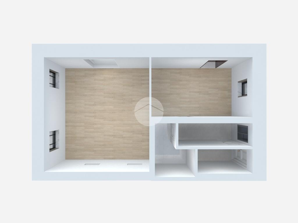 Al piano terra si trova un ufficio con ingresso indipendente, attualmente locato. Al primo piano è presente un bilocale composto da soggiorno con cucina open space, disimpegno, bagno cieco con doccia e una camera matrimoniale. La stessa disposizione interna si ripete anche al secondo e al terzo piano, dove si trovano gli altri due bilocali, identici per metrature e distribuzione degli spazi.