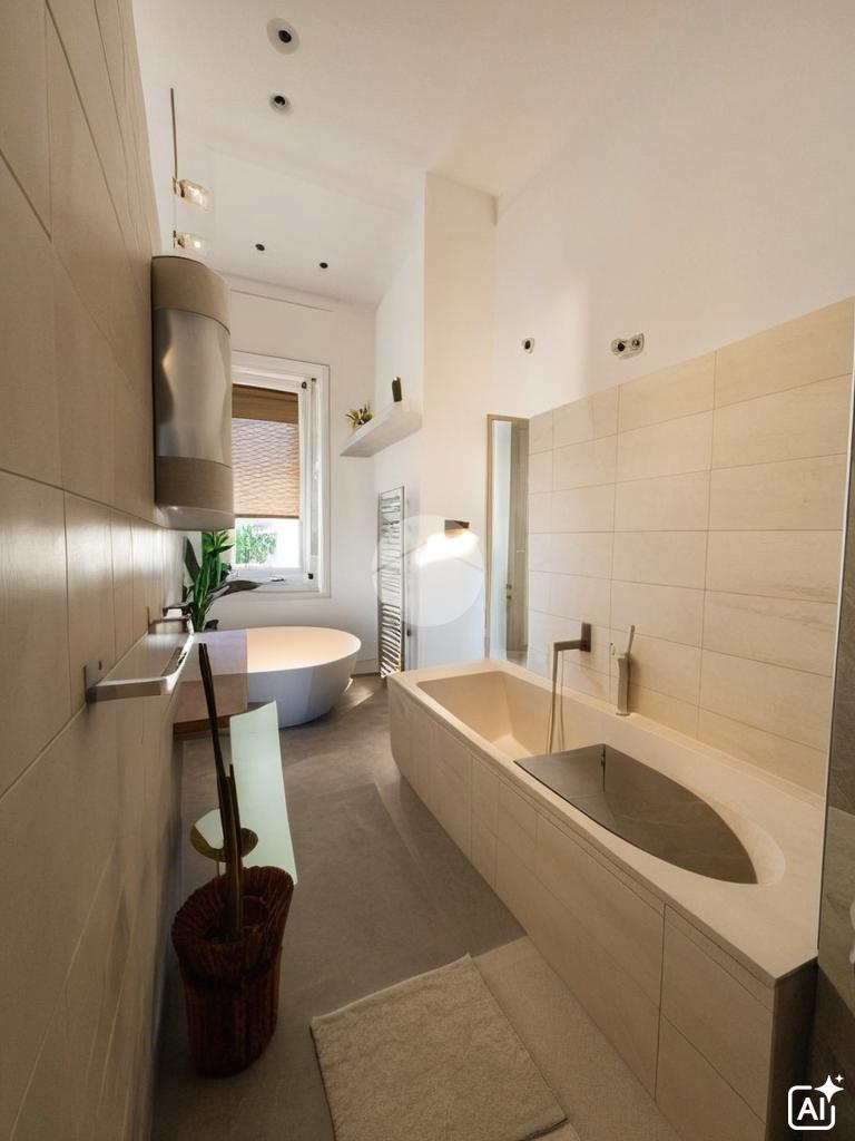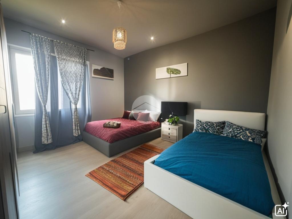 L’appartamento è composto da un ampio soggiorno con cucina separata, perfetto per chi desidera un ambiente accogliente e ben organizzato. Un corridoio collega la zona notte, dove troviamo due camere matrimoniali e un bagno finestrato con vasca.