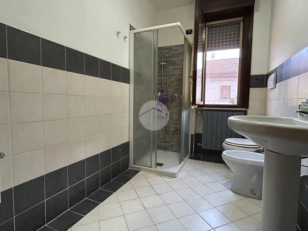 Dall’ingresso si accede al soggiorno, separato dalla cucina abitabile, entrambi con accesso diretto all’ampio terrazzo.