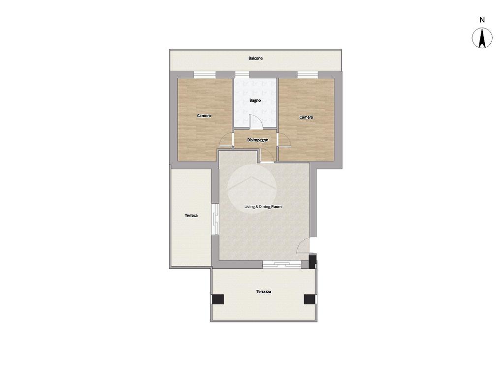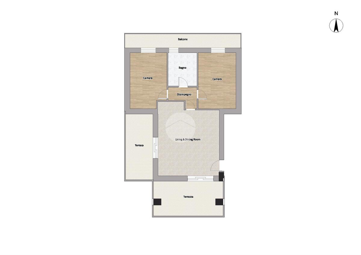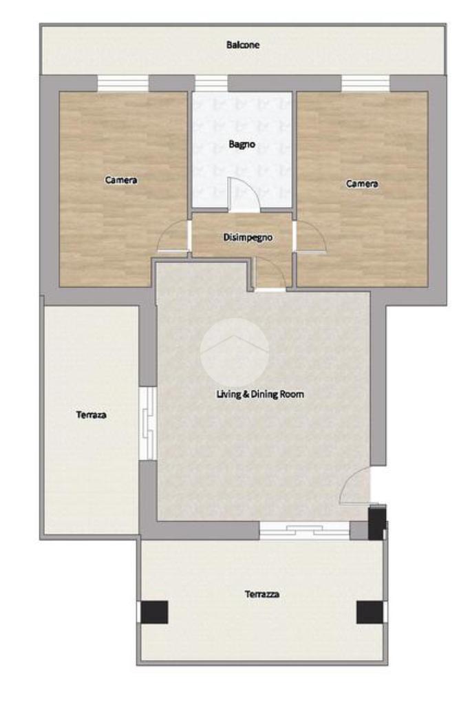 L’abitazione si distingue per gli spazi ben distribuiti e la grande luminosità: la zona giorno accoglie un ampio soggiorno con cucina open space, valorizzato dalla doppia esposizione che garantisce luce naturale durante tutto l’arco della giornata. Da qui si accede direttamente a due terrazzi, uno frontale di generose dimensioni e uno laterale, ideali per pranzi all’aperto.