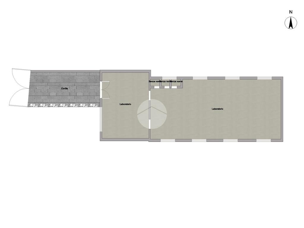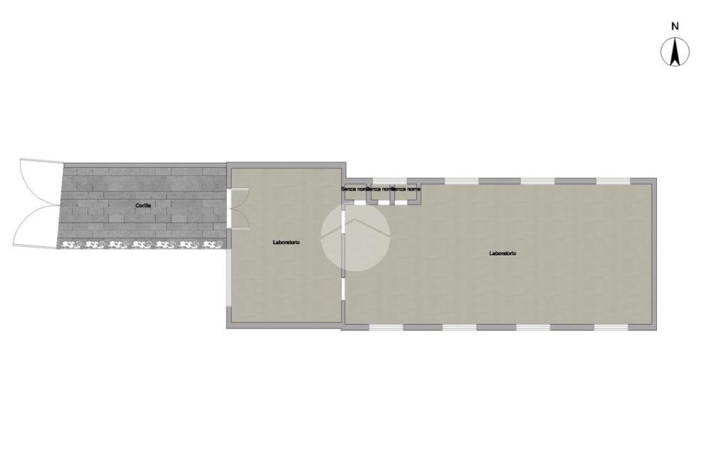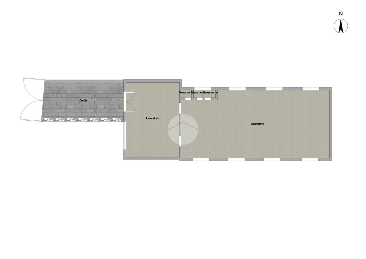 Al piano terra si trova un ampio e luminoso laboratorio di circa 270 mq con ingresso carraio e cortile privato.
