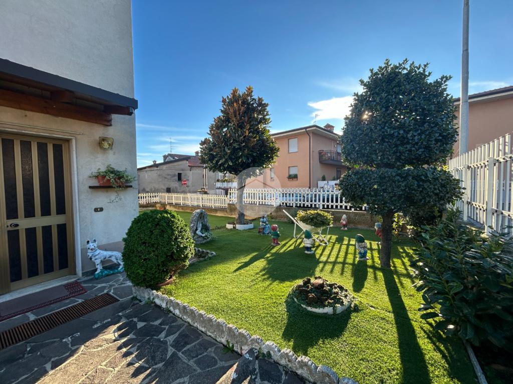 All’esterno, il giardino privato circonda la casa su due lati, regalando privacy e un piacevole spazio verde ideale per il tempo libero. Al piano terra è inoltre presente un box auto singolo.